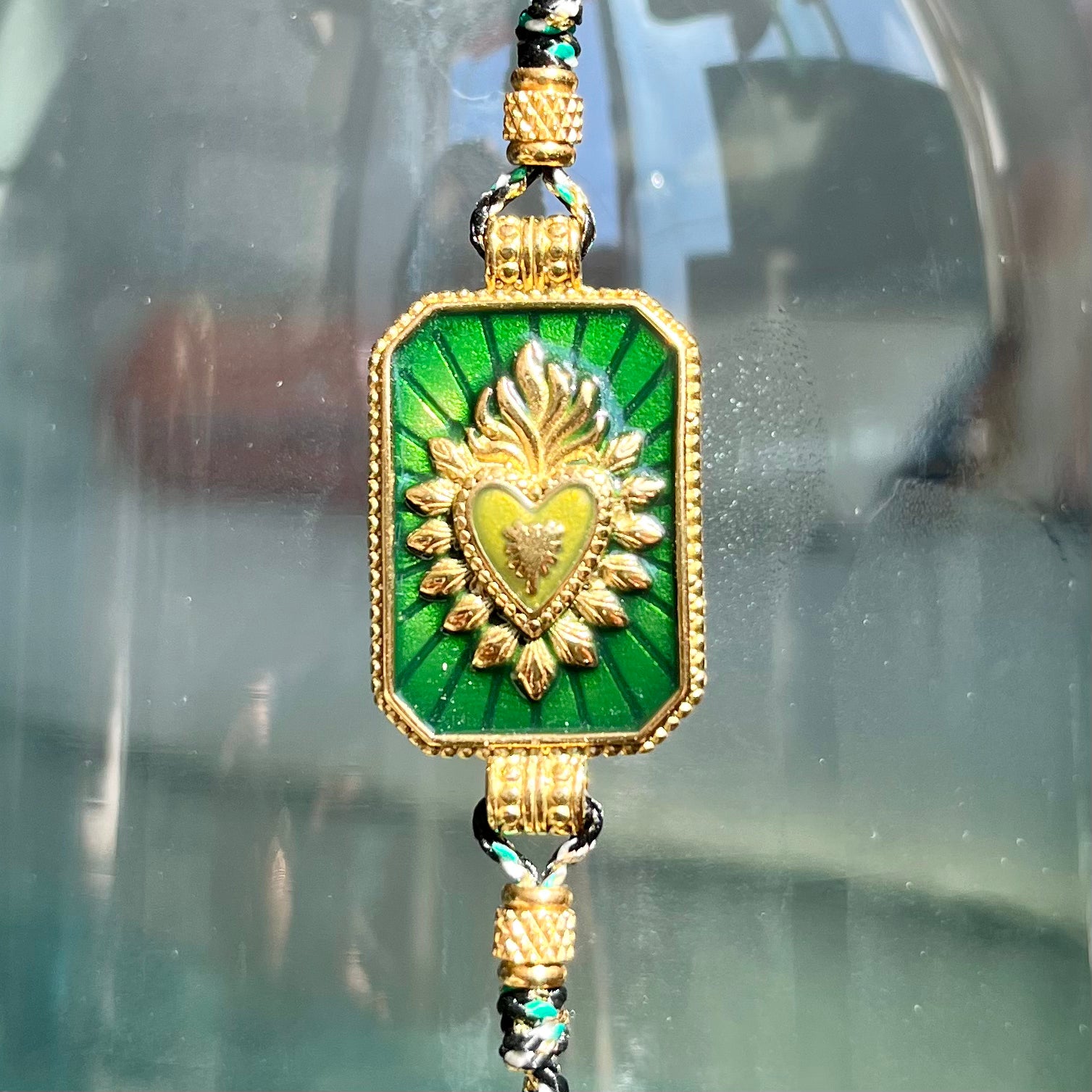 Isadora est un bracelet au style affirmé, composé d’un cordon tressé solide associé à une plaque en acier inoxydable doré ornée d’un ex-voto, cœur baroque en émail. Ajustable et résistant, il accompagne vos gestes du quotidien avec confort et élégance.