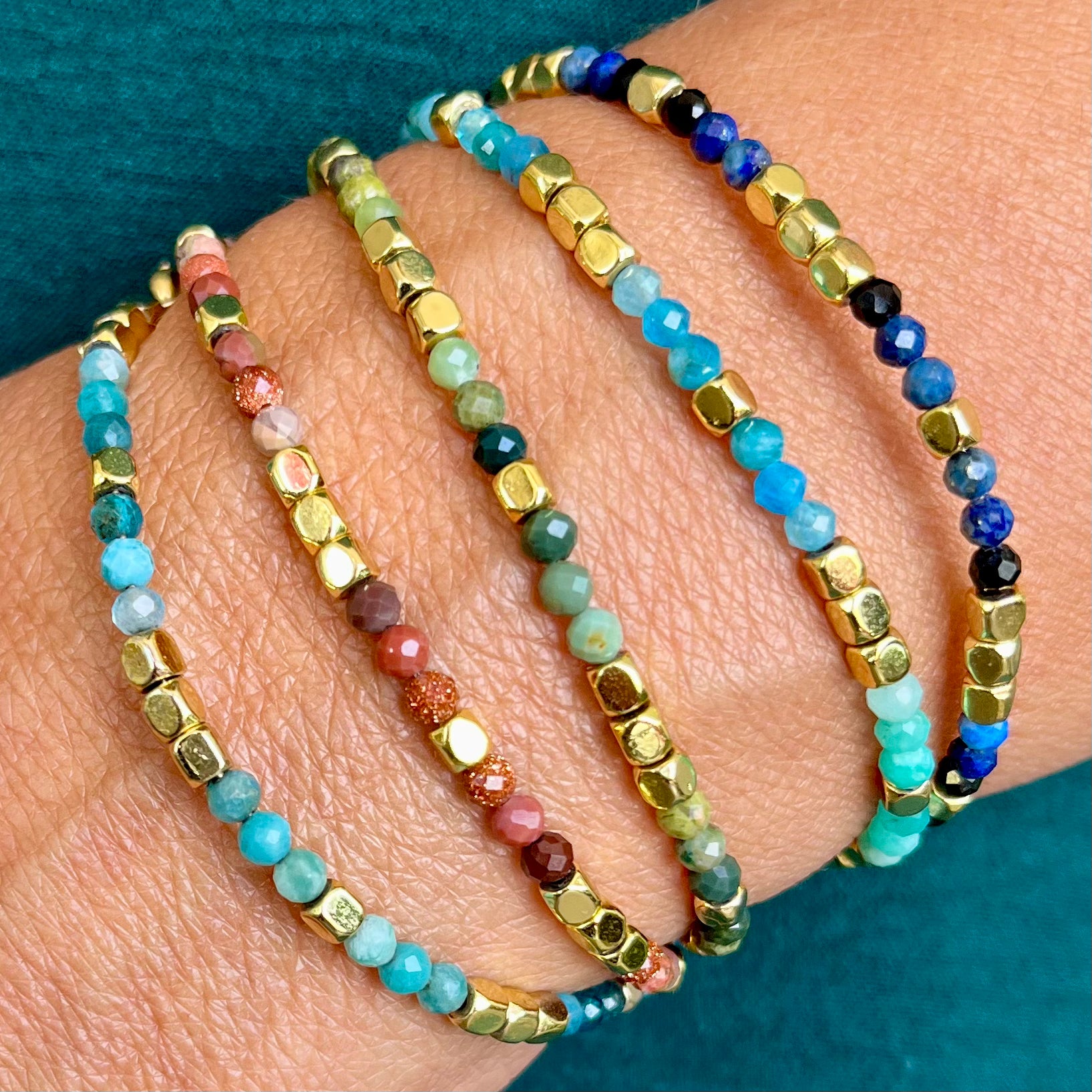 Chaque bracelet est unique : les pierres varient naturellement en couleur, reflets et textures, rendant chaque pièce authentique et singulière.