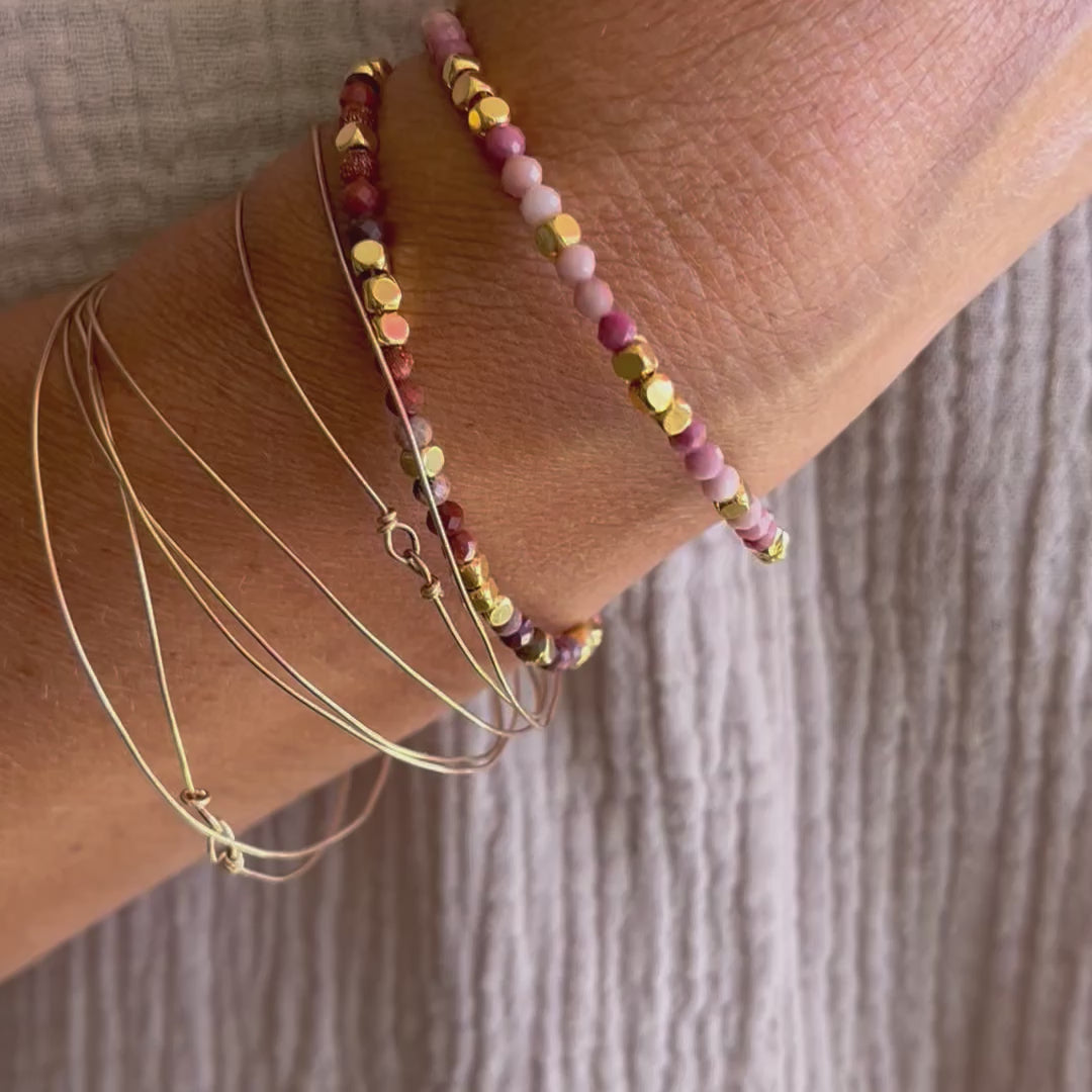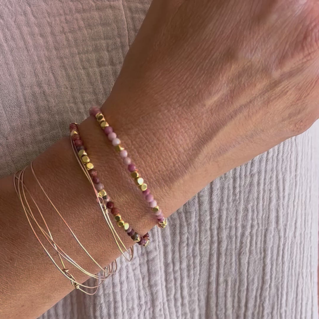 Bracelet Manuella en pierres naturelles et hématite sur jonc gold filled ou argent 925