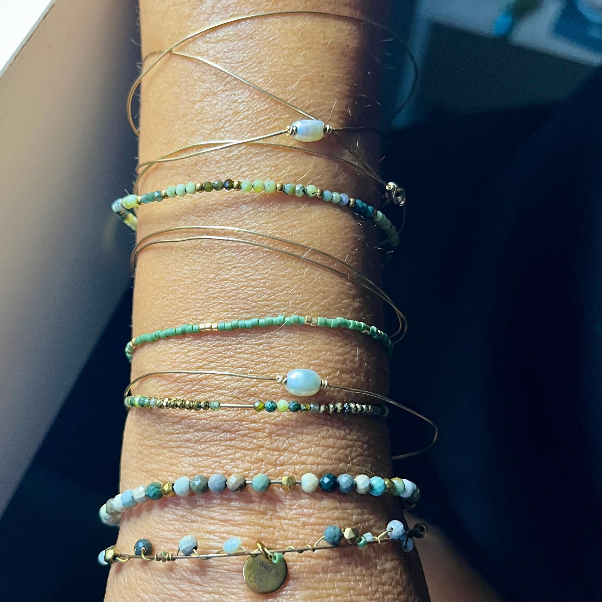 Mara est un jonc fin en gold filled ou argent 925, orné de perles de pierres naturelles choisies pour leur beauté et leur symbolique.