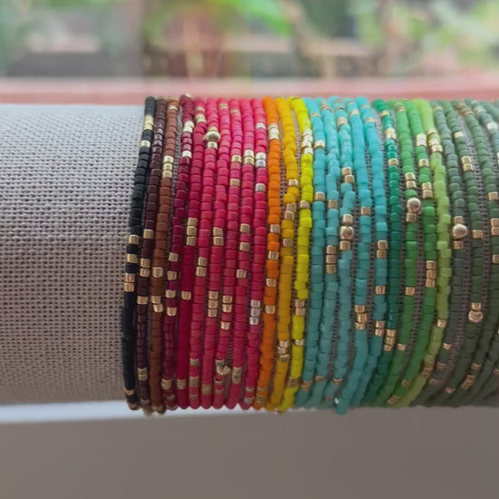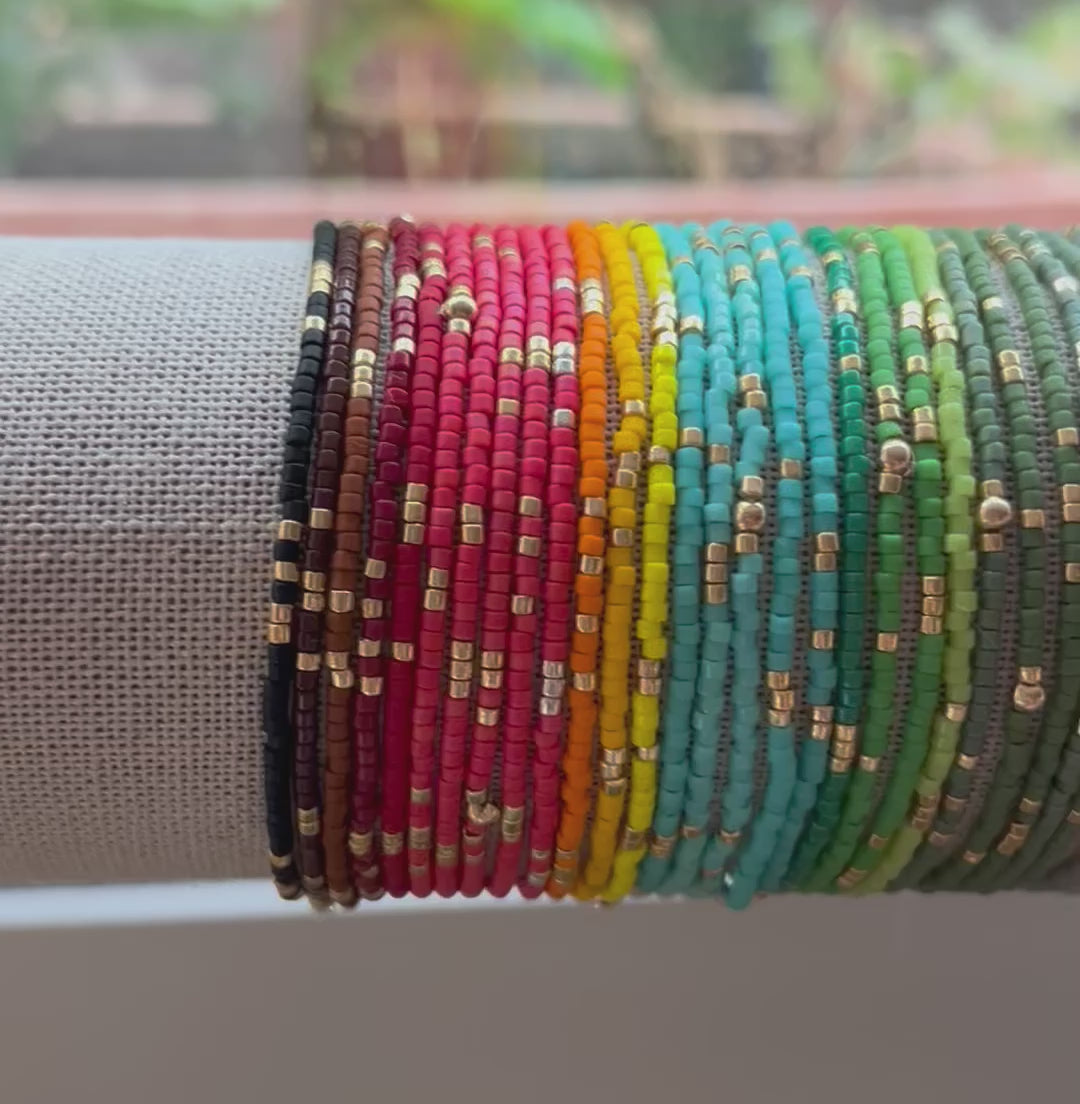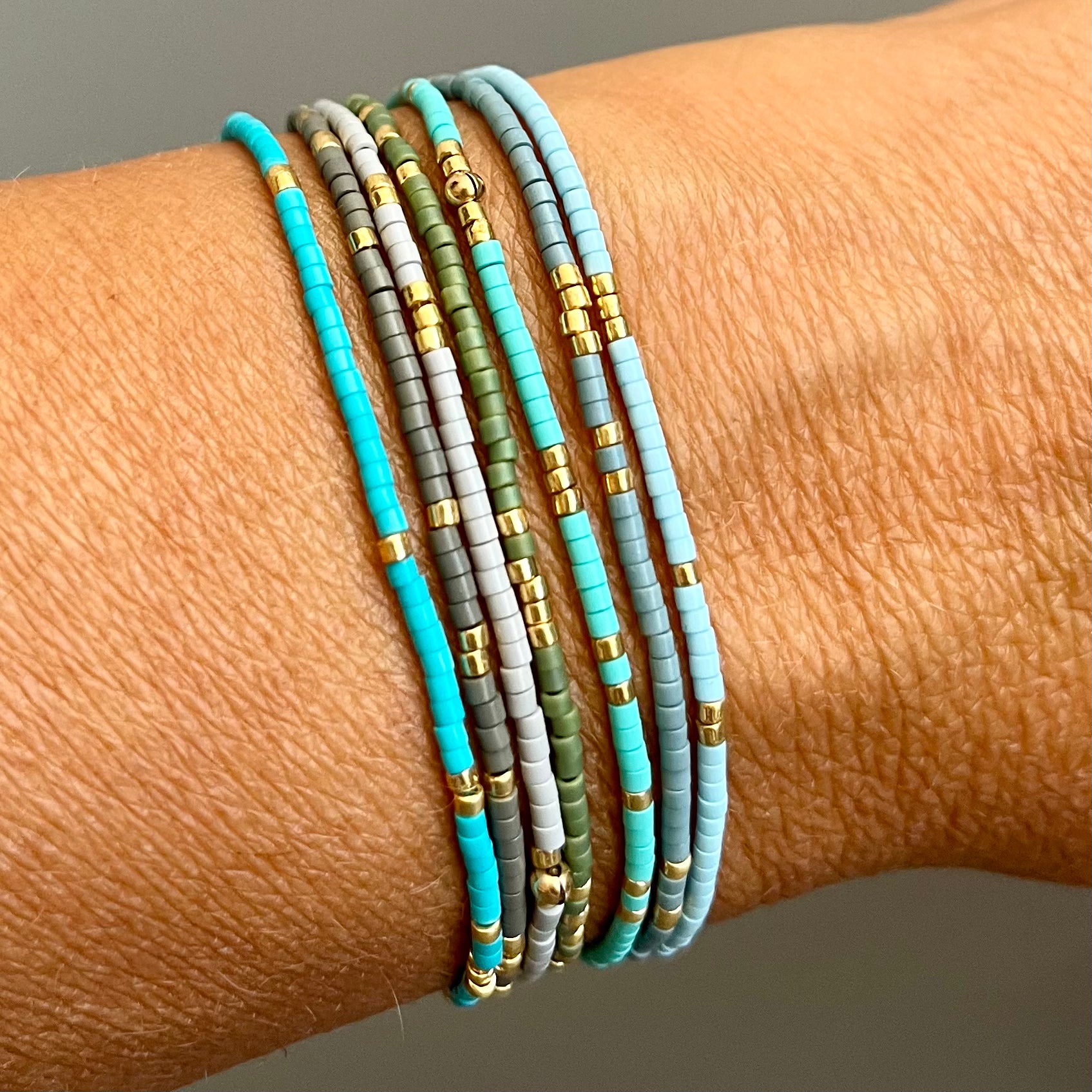 Bracelet minimaliste ultra fin extensible en perles de Miyuki - perles dorées - 32 couleurs.