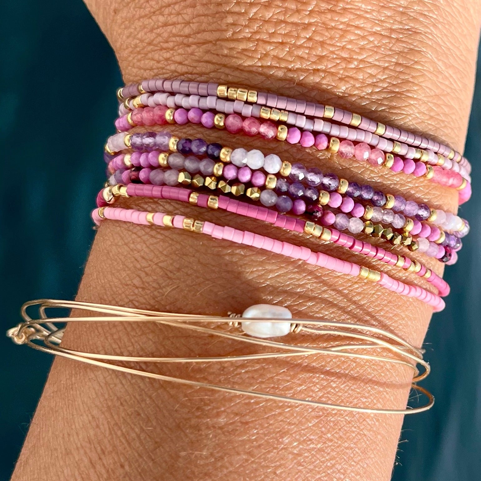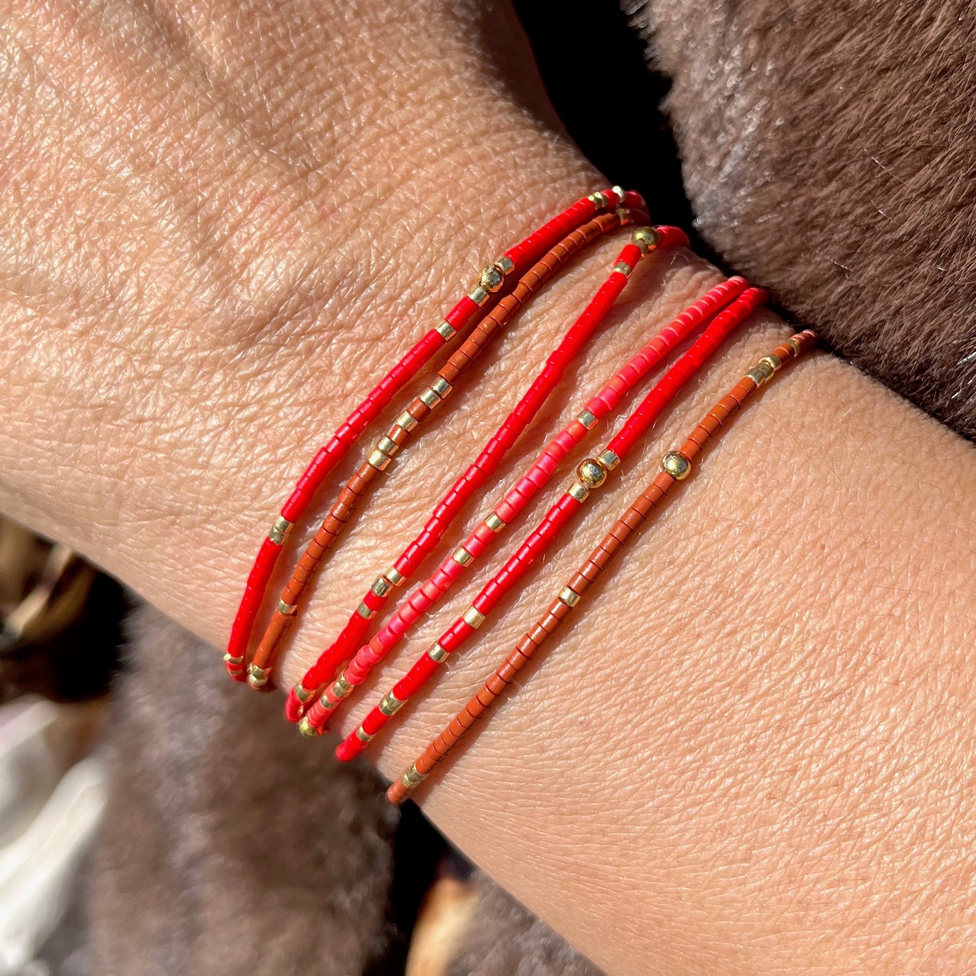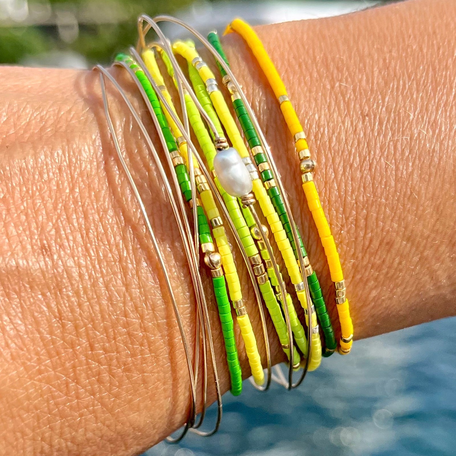 Bracelet minimaliste ultra fin extensible en perles de Miyuki - perles dorées - 32 couleurs.